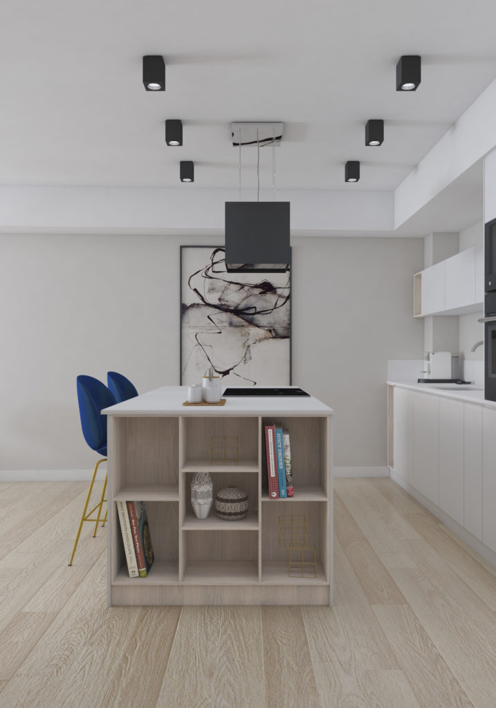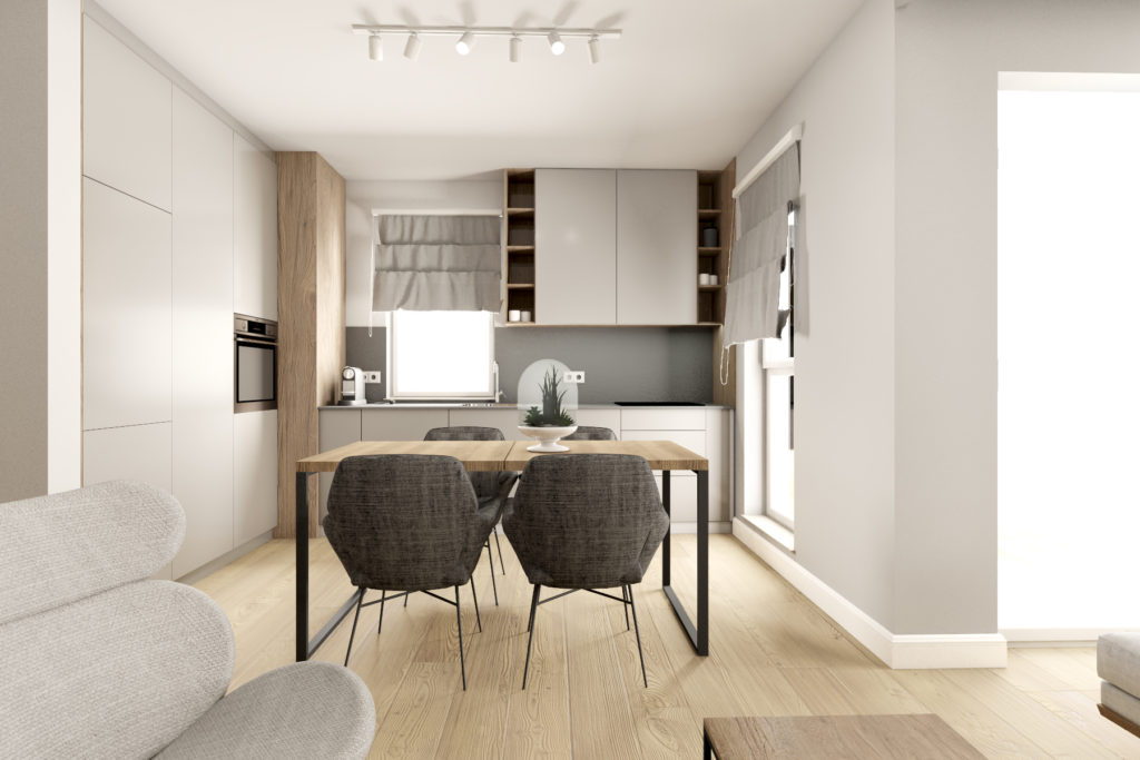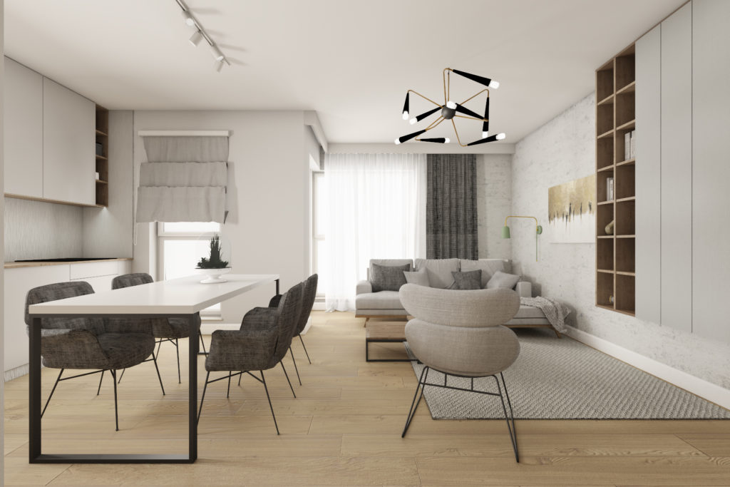 Wykończenie apartamentu, projekt i meble na wymiar – ul. Augustiańska 50 m2
