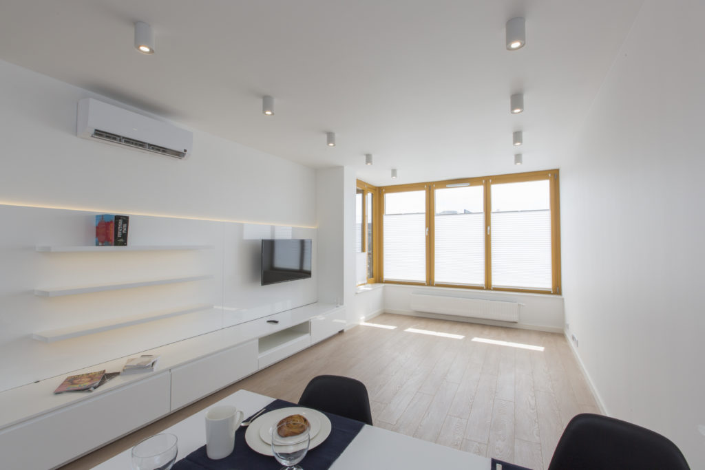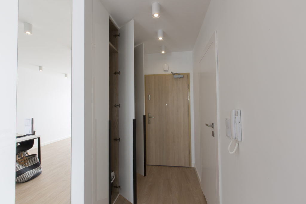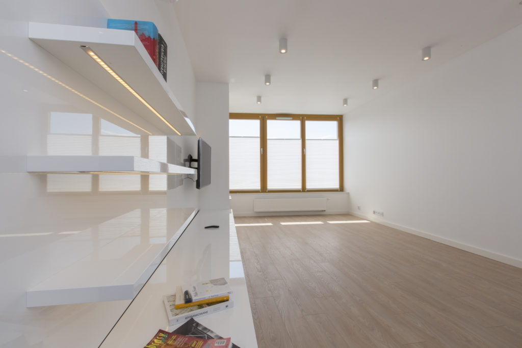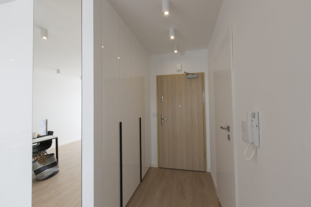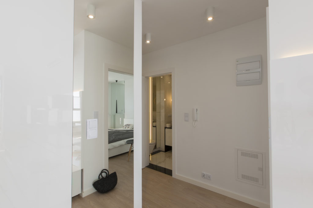 Mieszkanie zaprojektowane i wykonane pod klucz przez naszą firmę. Powstało nowoczesne, funkcjonalne, jasne wnętrze. Proste, nowoczesne meble tworzą doskonałą bazę pod indywidualną aranżację właścicieli. Szczególny nacisk położyliśmy na dobór wysokiej jakości materiałów wykończeniowych i dokładne wykonanie prac remontowych.
